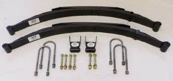 Heavy Duty rear leaf spring kit for Ford F250 and F350 trucks covering 1980-1997. Designed for applications with 3″ wide rear leaf springs, this extra capacity kit increases your truck’s rear weight handling and restores factory ride height. Ideal for both pickup and cab & chassis SRW/DRW configurations, this complete kit replaces both sides of the rear suspension.