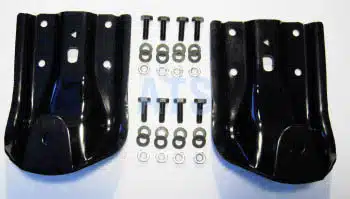 OEM replacement rear-of-rear leaf spring hanger assembly kit for Chevy and GMC pickups and SUVs. Designed for 2-1/2″ wide rear leaf springs, this kit includes both left and right side hangers with all necessary hardware for a direct-fit installation. Hanger height is approximately 9-1/2″.