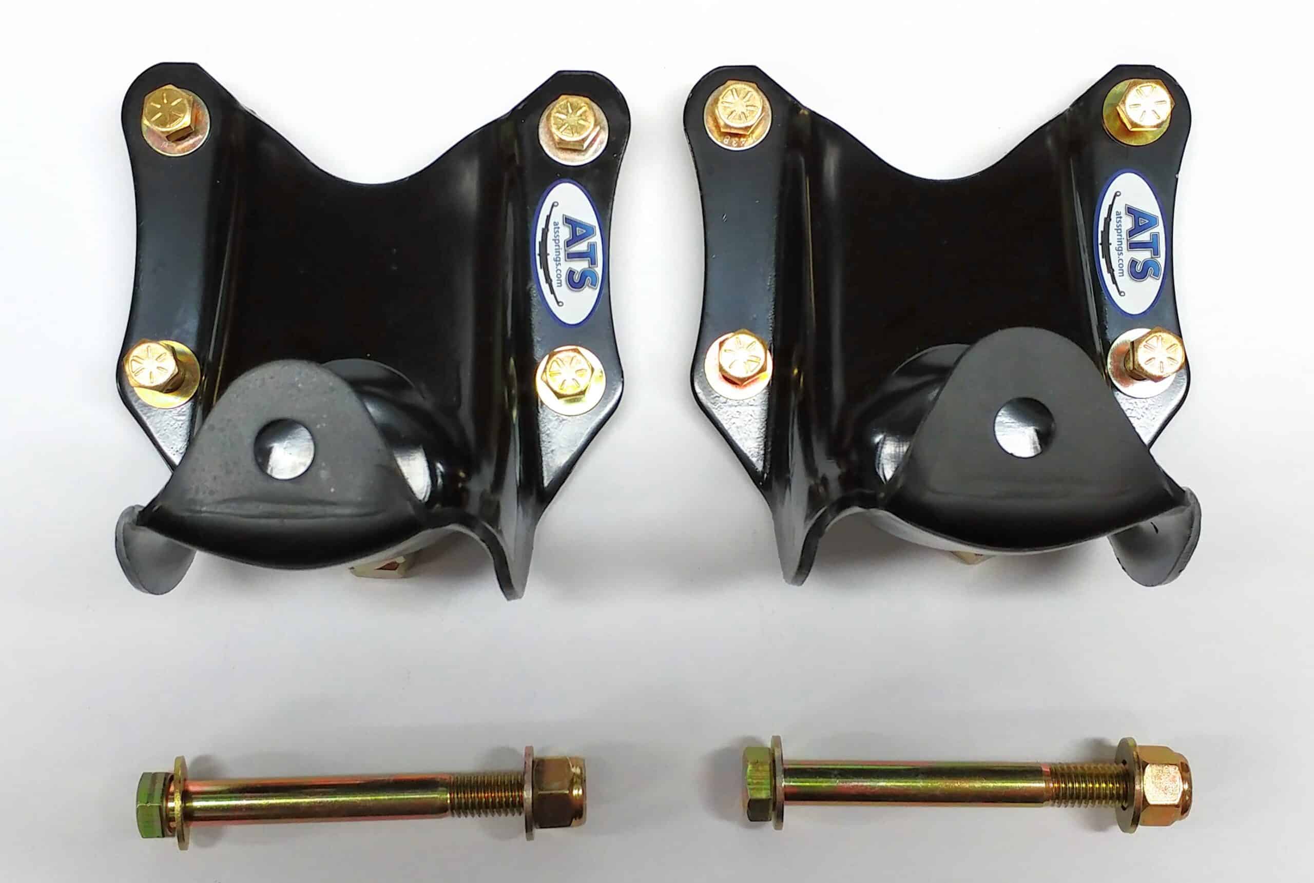 Replacement rear of rear leaf spring hanger kit for Ford F250 and F350 2WD/4WD applications. This kit includes both left and right side hangers for a complete install.