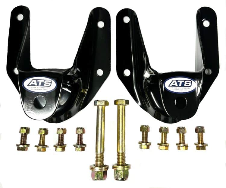 Notes: This kit replaces both front hanger positions of the rear leaf springs. Right side and left side hangers are identical. Designed specifically for 2004–2010 Ford Ranger applications using 5/8″ front spring eye bolts.