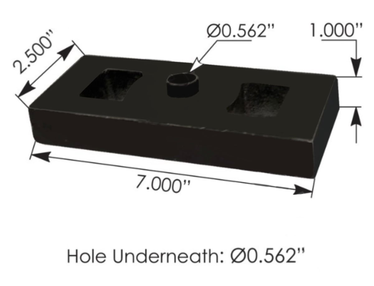 Spring Riser Block for leaf spring suspension applications. Provides proper axle spacing and alignment while delivering strength and durability for heavy-duty suspension systems.