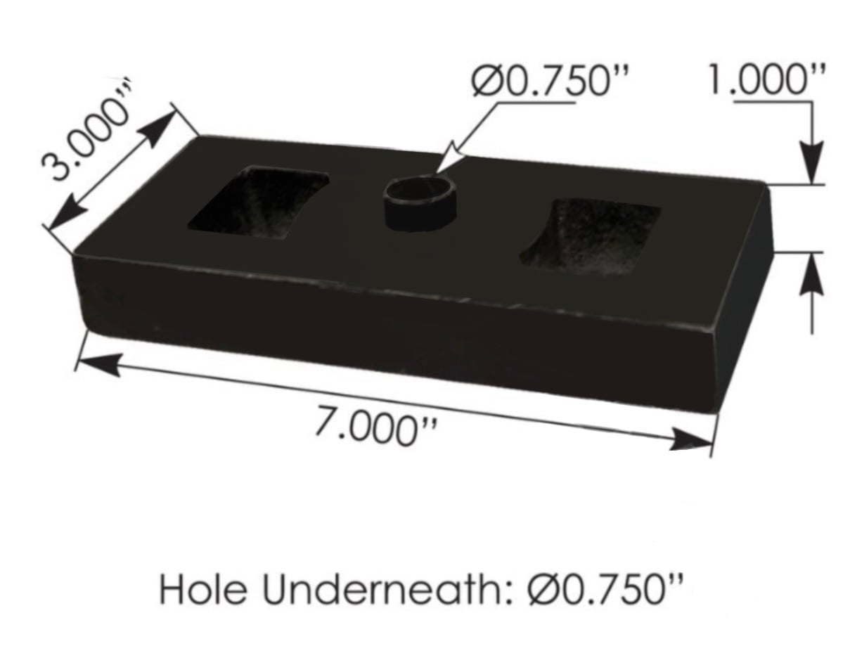 Spring Riser Block for leaf spring suspension applications. Provides proper axle spacing and alignment while delivering strength and durability for heavy-duty suspension systems.