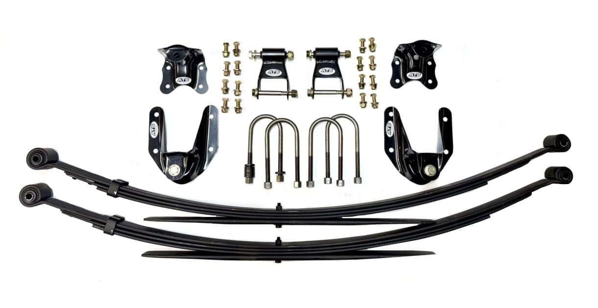 Complete rear leaf spring suspension kit for Ford Ranger 2WD trucks. This OEM-style replacement kit is designed to restore original ride height and factory ride quality while replacing all rear suspension components on both sides. Ideal for stock replacement applications where durability, proper fitment, and ride quality are required.